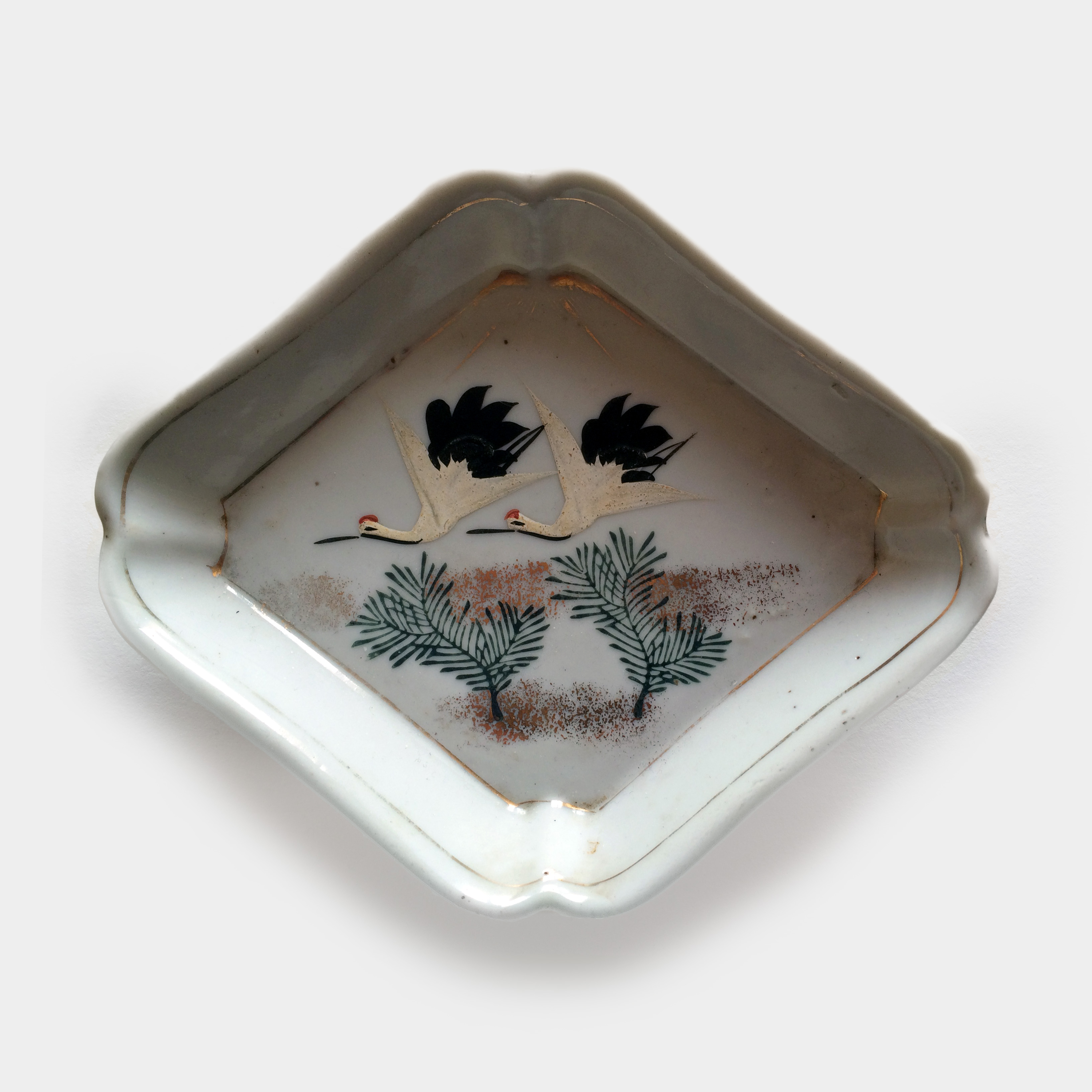 Sada talířů s jeřáby a borovicemi